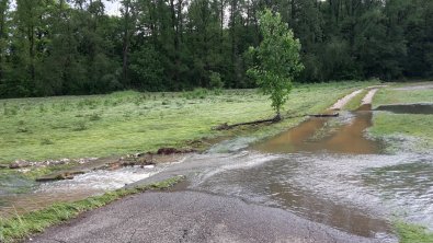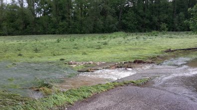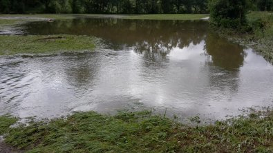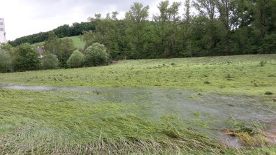 Überschwemmung geschlossen. Das Freibad Spiesel ist nicht betroffen und hat