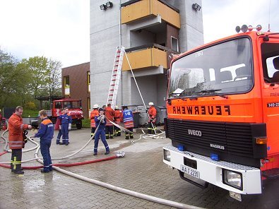 Aalener Feuerwehr hatte gerade geübt und brachte schnellstens mit Blaulicht