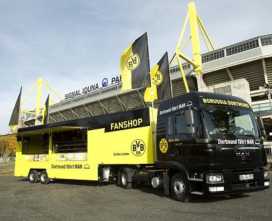 mitgereisten BVB-Fans verkauft werden. Der Sattelzug wurde vom Münchner