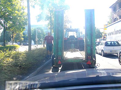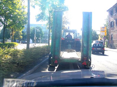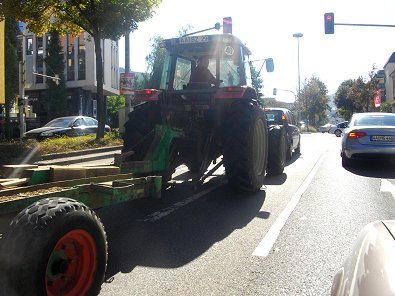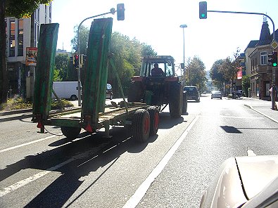 beobachtet haben: Bauern mit Trecker und Anh änger und kein Nummernschild