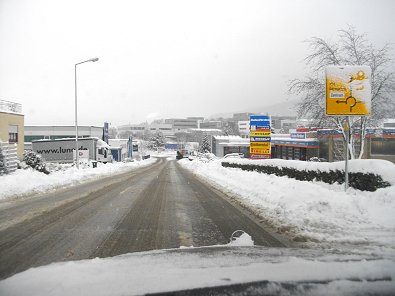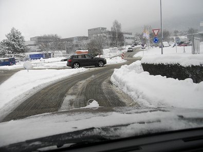 Der Kreisel im Industriegebiet: Auch hier die Fahrspuren sehr glatt.
