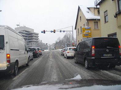 Die Stuttgarter Straße stadteinwärts: Warten auf Grün der Ampeln.