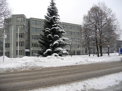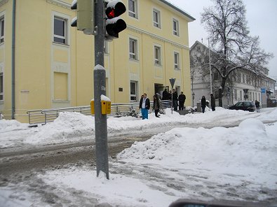 Zigarettenpause vor Amtsgericht Aalen: Schnee so weit Auge reicht.