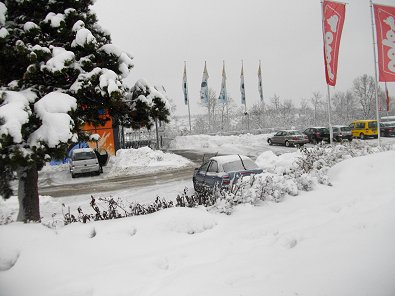 Noch ein Schneefall und die Polizei ist bald dann auch eingekesselt.