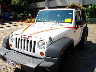Hochzeitfoto mit Brautpaar (ohne Schleier) u. dann ging es im weißen Jeep