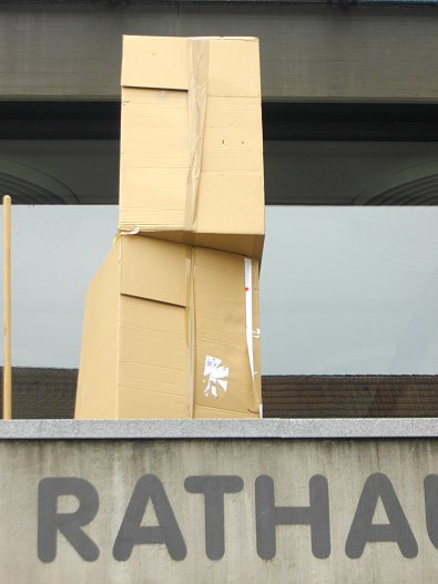 Kartons verpackt am 1. Mai 2013 schon wieder am Rathaus in Aalen. AIZ-Fotos: Dieter Geissbauer