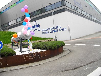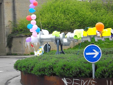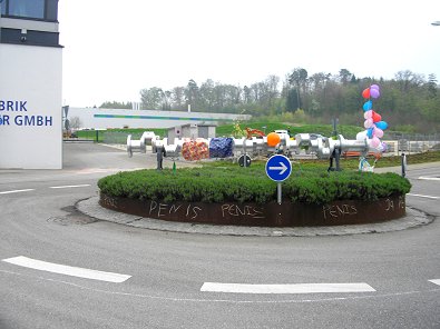 zum 1. Mai 2013: "Penis-Gelenkwellen-Maibaum" bei Alfing-Kreisel in