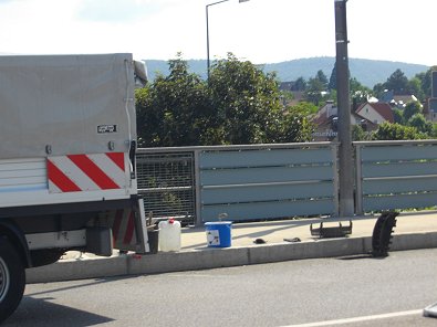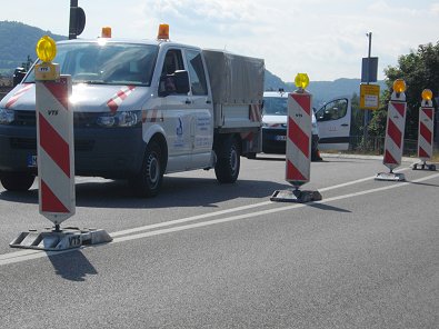 Verkehrseinrichtungen festgestellt, die übermannshoch durch den