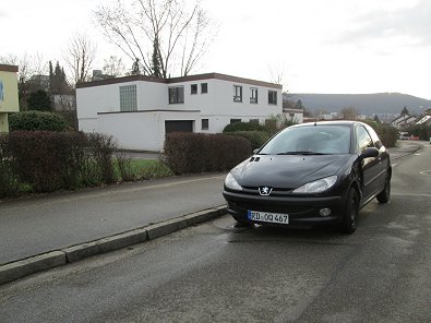sein Auto nicht vor einem Hochhaus sondern direkt an der gleichen Stelle: Am