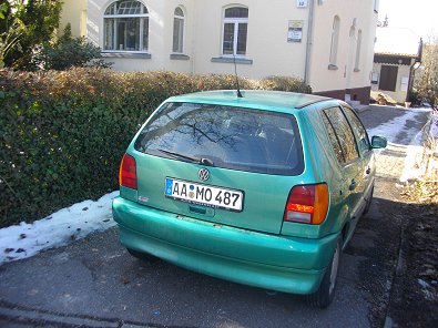 schwarzen VW Multivan im Bereich des Kofferraums und entfernte sich