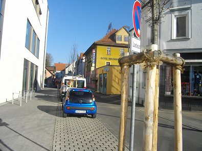 Straße in Aalen heute zu parken. Der breite Gehweg ist Fußgängern und