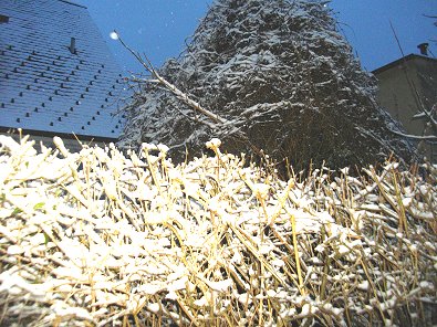 ist: Er hat zwar in seinem Garten auf dem schneebedeckten Baumgipfel viele