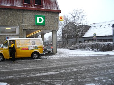 ist, dass der Briefträger/Paketzusteller der Post in der Kaufland-Einfahrt