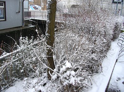 Schnee-Idylle zwischen Kocher und Kaufland mitten in Stadt Aalen.