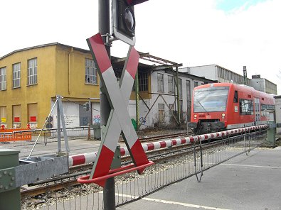 April 2013 um 13,35 Uhr die Brenzbahn über den Bahnübergang Walk-straße in