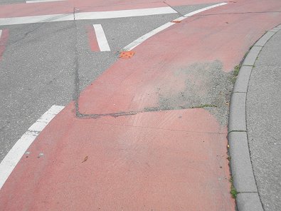 einerseits die abgefahrenen roten Lappen auf dem Boden die den Toten Winkel