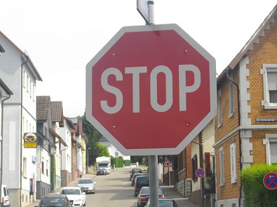 deutlich und neu: "STOP" heißt nicht langsam an Kreuz-ung heran fahren,