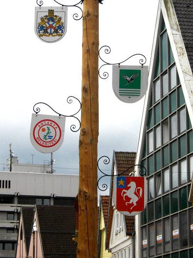 Die Wappen unserer Partnerstädte bleiben weiter am Maibaum 2013.