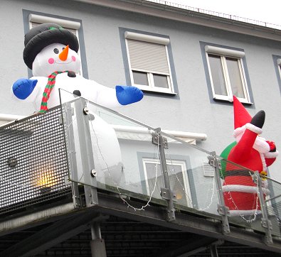 Wasseralfingen: Aufs seinem Balkon werben nun Nikolaus und Schneemann.