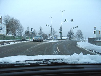 Hochbrücke in Richtung Hauptbahnhof: Glatteis u. Schnee.
