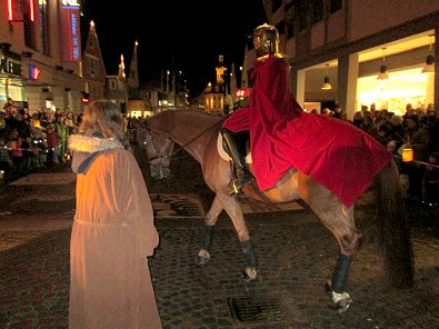 St. Martin auf dem Pferd vor dem Rathaus in Anwesenheit von dekan Drescher