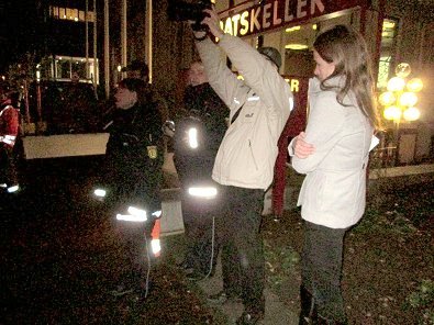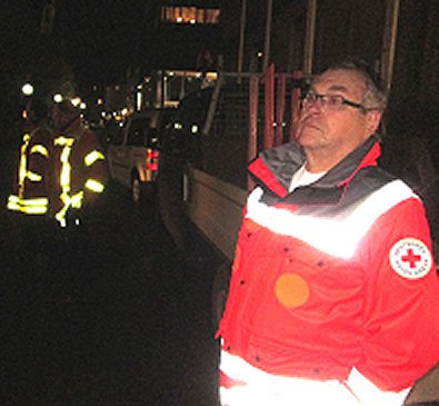des DRK u. Hilfskräfte beobachteten das Spektakel.