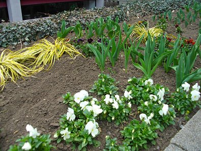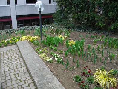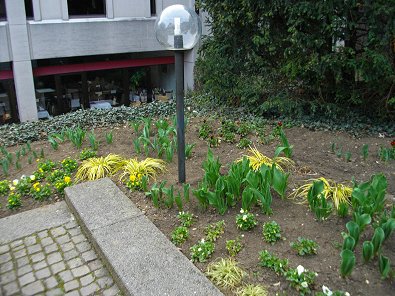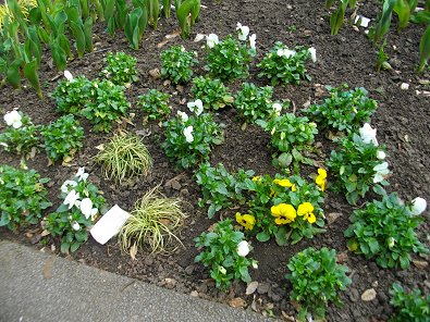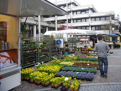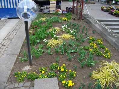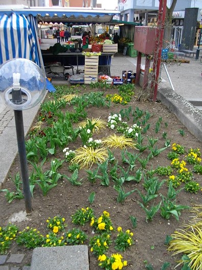 zaghaft erste Stiefmütterchen vor dem Rathaus aber immerhin die Essinger