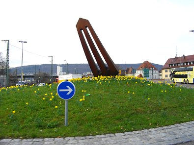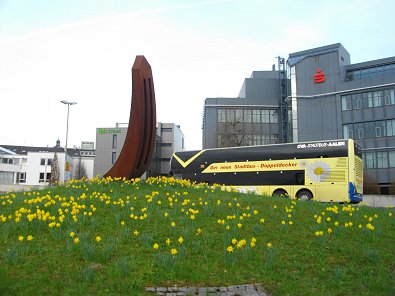 rostigen KSK-Kreisel viel zu spät nach Ostern die Osterglocken blühten