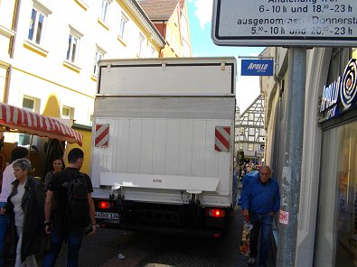 es kommen musste: Nur wegen den Lkw's die schon um 12 Uhr die engen Gassen