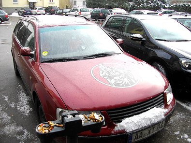 das Fahrzeug auf einem Firmenparkplatz in der Gold-schmiedgasse abgestellt