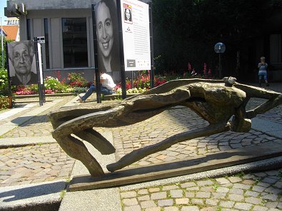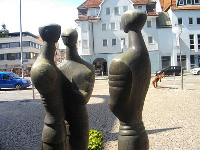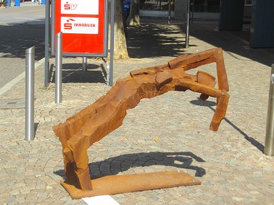\"Die Zur-ückgebogene\", aufgestellt vor der Kreissparkasse, abgebildet.