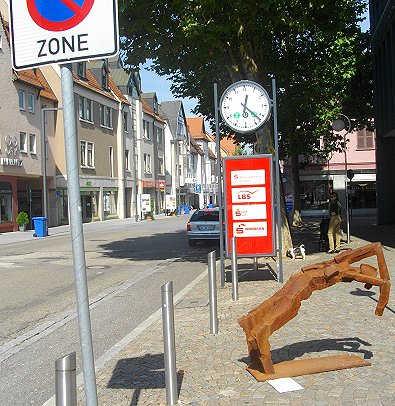 Uhr" vor der KSK Ostalb. Handelt's sich um Aalener Reinigungs-Geschäftsmann?