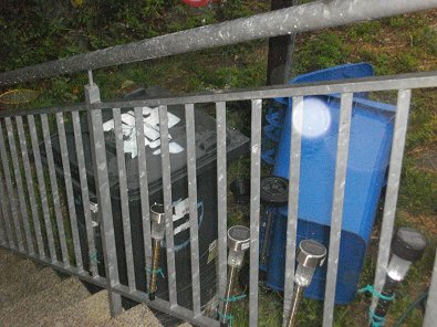 wurden Mülltonnen umgerissen u. vom Wind zum Nachbarn transportiert, oder in