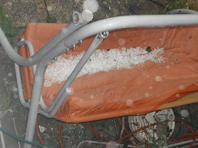 der Hollywood-Schaukel sammelten sich die sehr großen Hagelkörner.