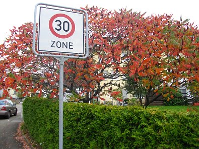 Herstrot an der Ecke Hegelstraße: Begnn Zone 30 km/h.