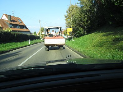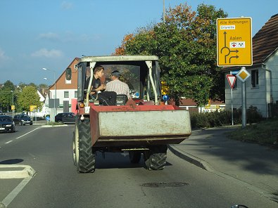 vorbei fahren, obwohl ihre Traktoren keine amtlichen Kennzeichen haben.