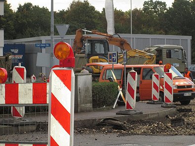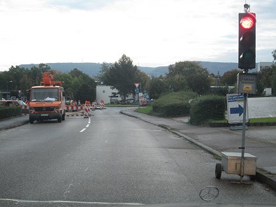 einen zur anderen Ampel nichts gebaut wird, aber die Bauarbeiter genehmigt