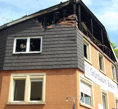 06.05.14 im Gebäude Friedhofstraße 21: Das Brandobjekt wurde an den