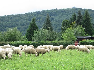 Die große Schafherde hoch über Aalen sah Sonntag Gras fressend dem