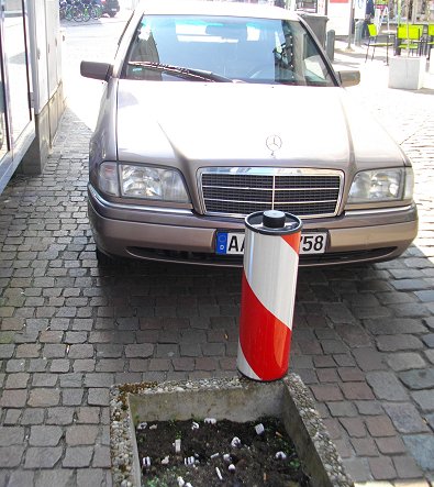 die Stadt Aalen ein Straßenpolster an den Blumentrögen angebracht damit die