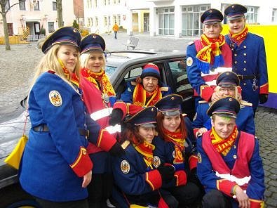 meist jungen Ordner beim Faschingsumzug in Unterkochen "alles im Griff":