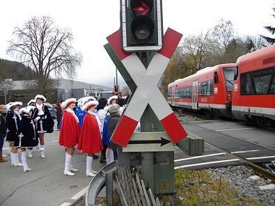 Bahnübergang beim Bahnhof in Unterkochen: Es gab ein kostenloses Tänzchen