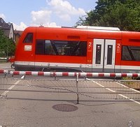 noch Autos auf den Gleisen stehen und der Zug nach Aalen einfährt dürfte es