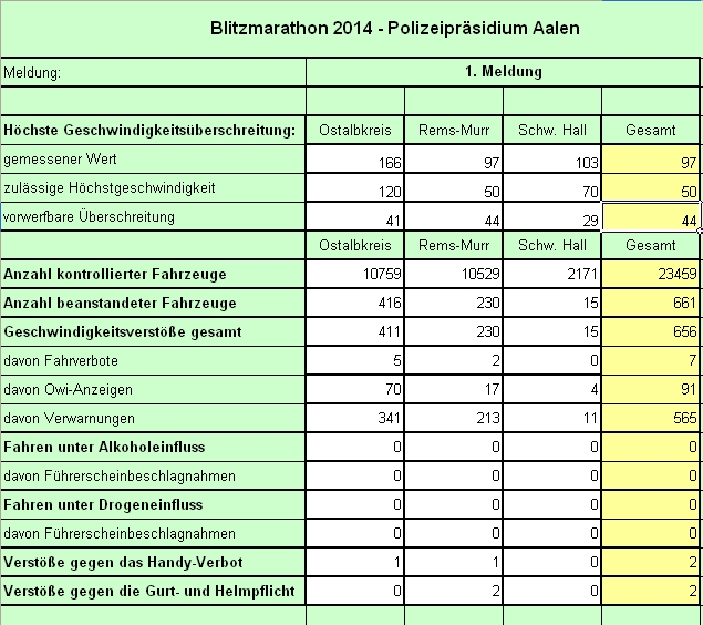 Der "Blitzmarathon" 2014 des Polizeipräsidiums Aalen brachte für den