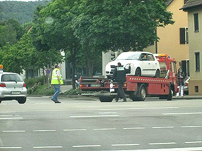 tastete sich in die Kreuzung. Da er einen heran nahenden Pkw Soda auf der