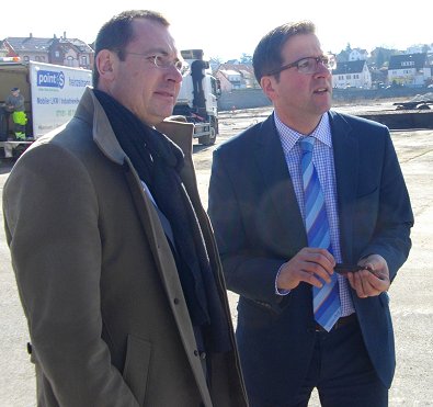 OB Rentschler (links) u. Wirtschftsbeauftragter Weiß am Brandherd.
