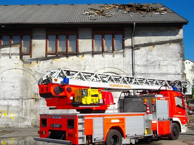 Feuerwehrsatzes hielt sie auf Höhe des ehemaligen Gaskessels zur Sicherheit