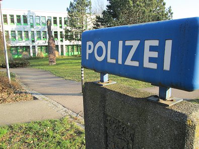 Aufstieg zum Polizeipräsidium zu schnell? Das Polizeischild das in der