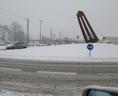 der Stadt im Schnee stecken blieben, wie wir am Aalener