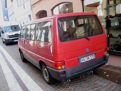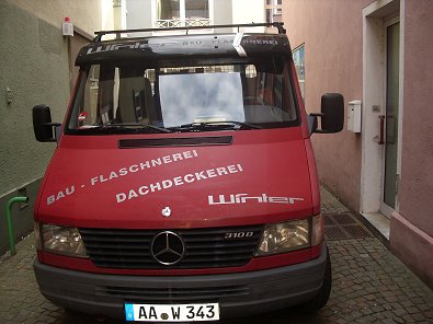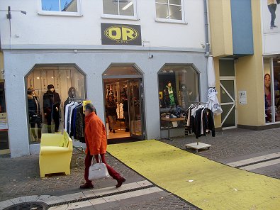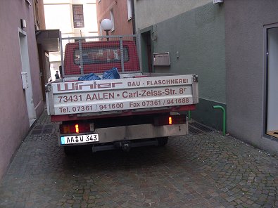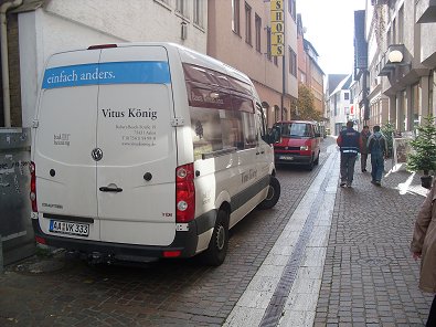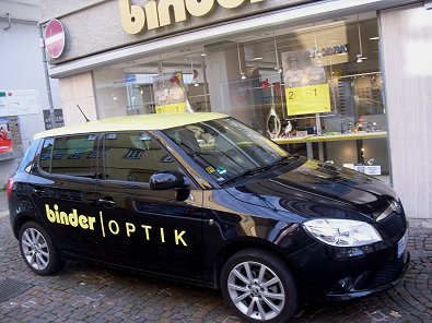 mitten in Fußgängerzone: Auto von Optik Binder.
